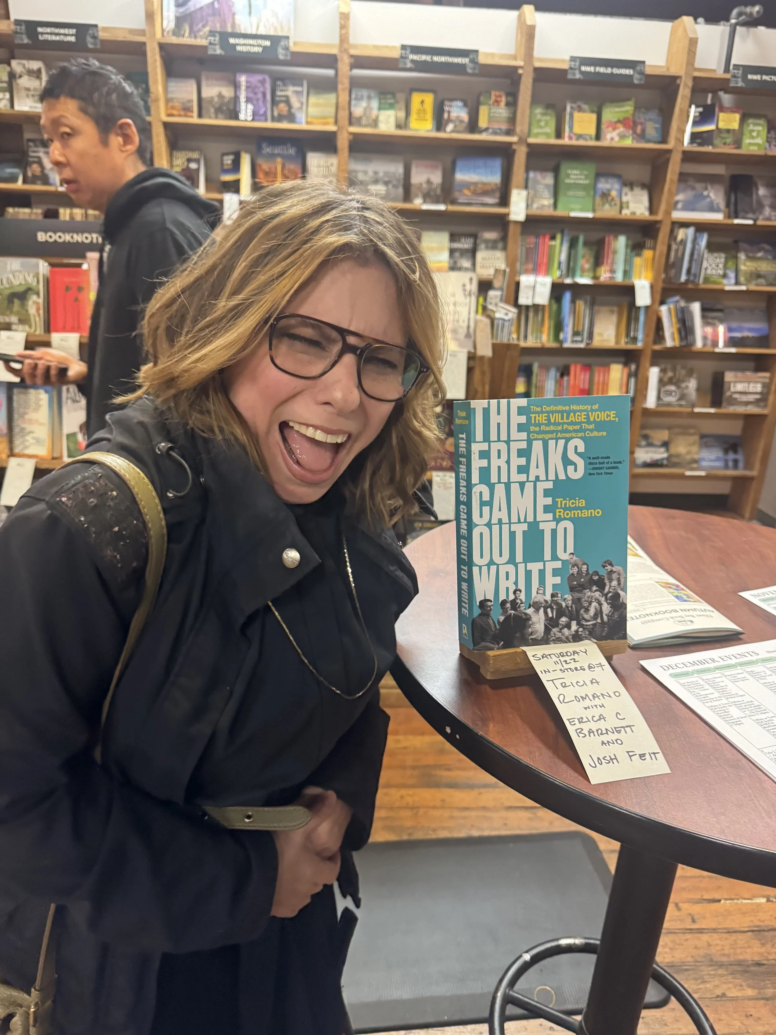 On Saturday night, wearing our alt-weekly cred on our sleeves, ECB and I interviewed Seattle writer Tricia Romano at Elliott Bay Books. The occasion? The paperback release of her oral history about OG alt weekly the Village Voice. It was a finalist for the 2024 National Book Critics Circle Award.