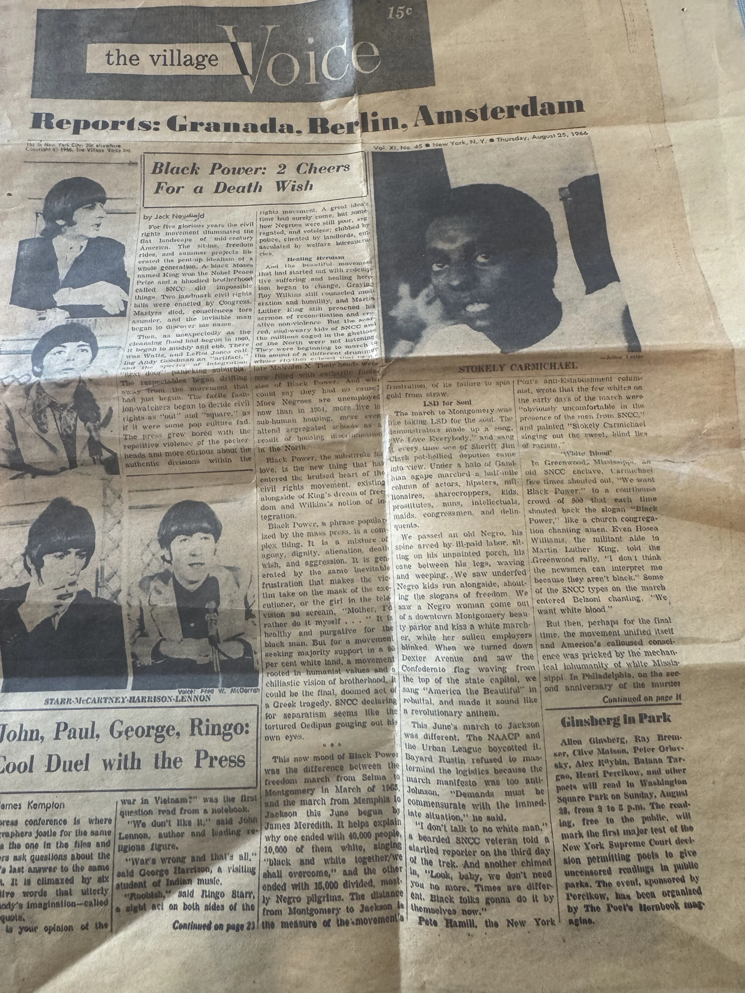 Romano allowed that the Voice’s civil rights beat reporter was a woman named Marlene Nadle. I eagerly googled Nadle the next day. Turns out Nadle was a young white lady who was also an activist with the serious 1960s civil rights group, CORE. Her subjective role as a member of CORE fit the Voice’s “direct journalism” aesthetic: She had a front-row seat to the civil rights story. Literally. Nadle was on the chartered bus from Harlem to D.C. for 1963’s landmark March on Washington. Her embedded vantage informed her candid coverage and gave her an early peek at the story that would come to define the movement more publicly in the late 1960s: The intractable tension between Black activists and white liberals.